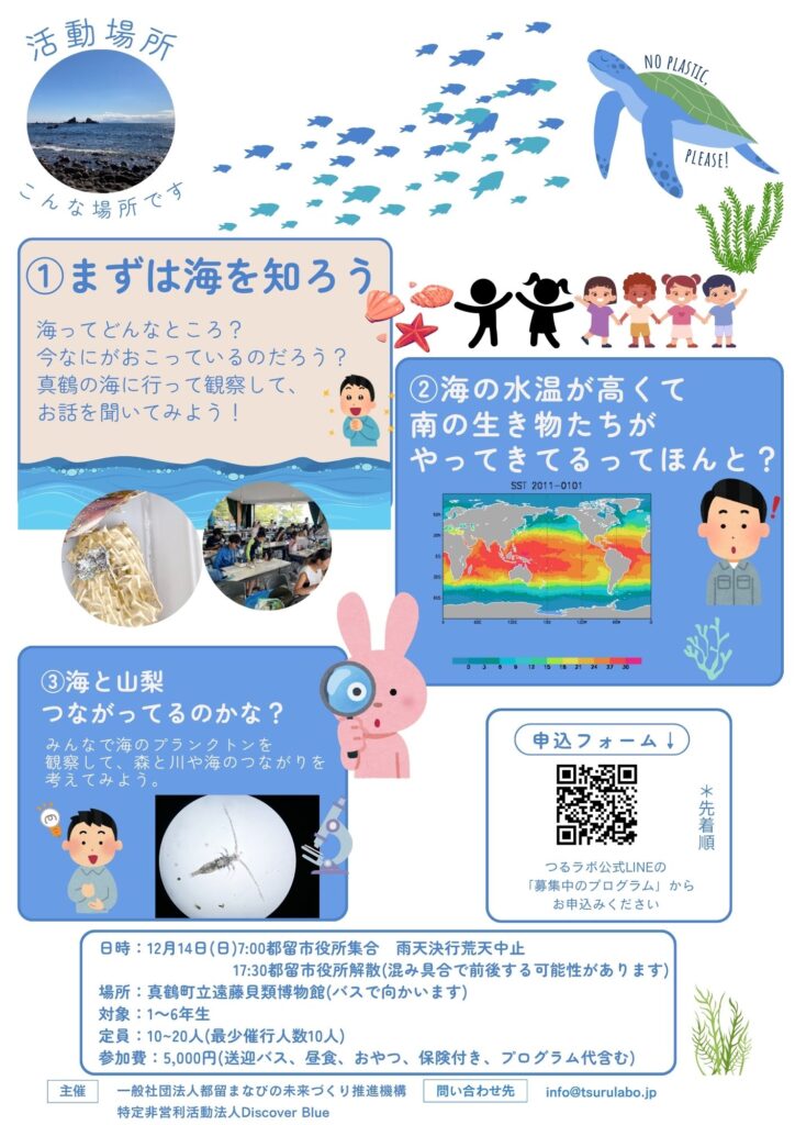 バズで真鶴の海に行きビーチコーミングやDiscover Blueさんと真鶴町立遠藤貝類博物館の見学やプランクトンの観察をして海の調査ファイルを完成させます。