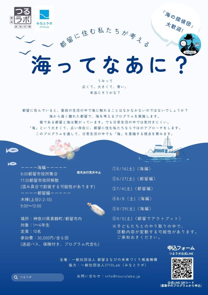 都留に住んでいると、普段の生活の中で海に触れることはなかなかないのではないでしょうか?海から遠く離れた都留で、海を考えるプログラムを実施します。