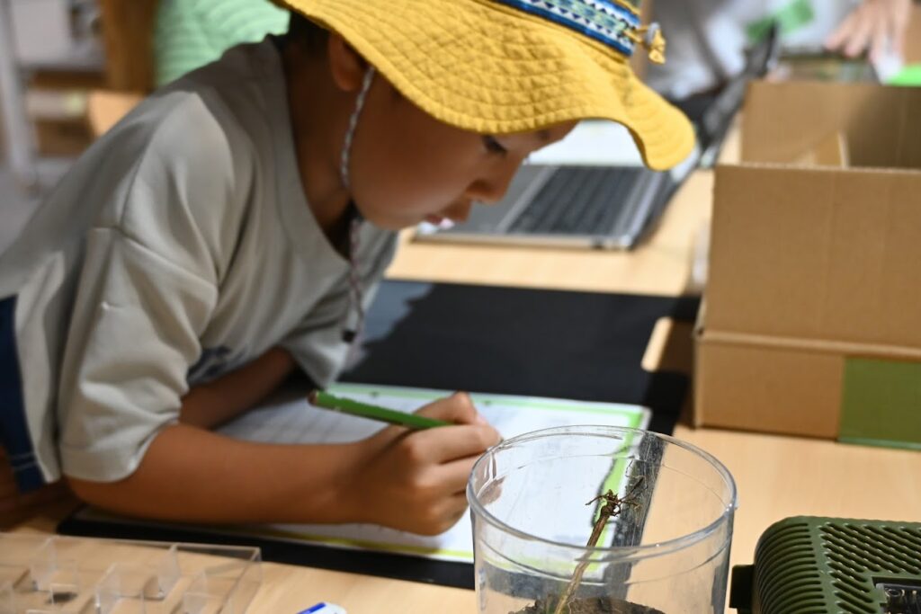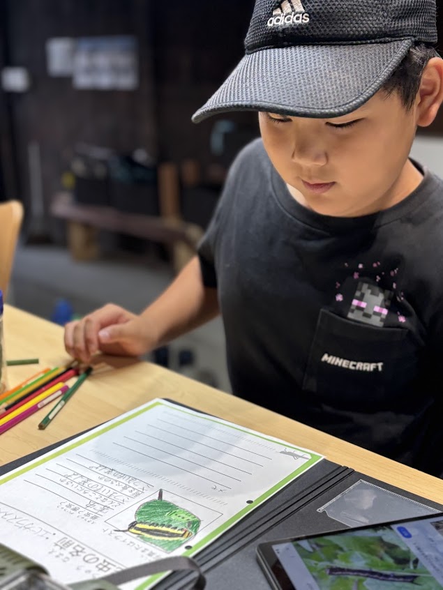 スタッフが何も言わずともワークシートに捕まえてきた昆虫のことをまとめていきます。