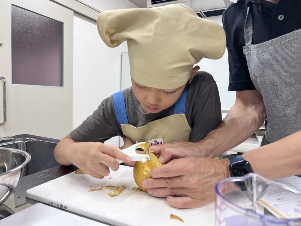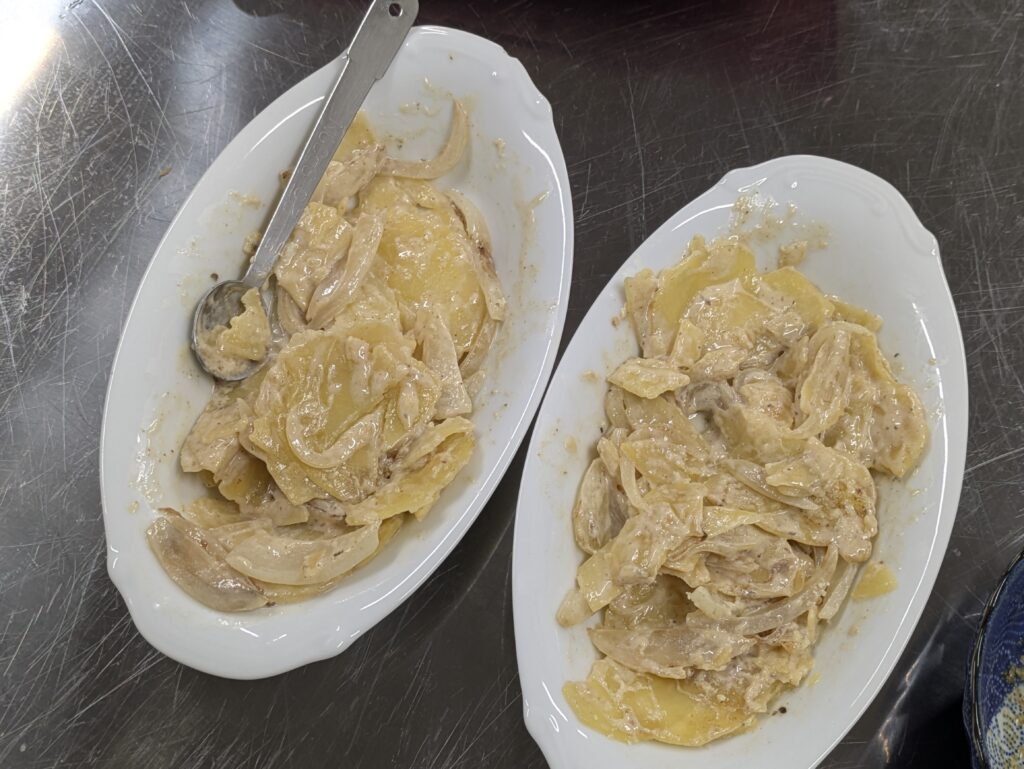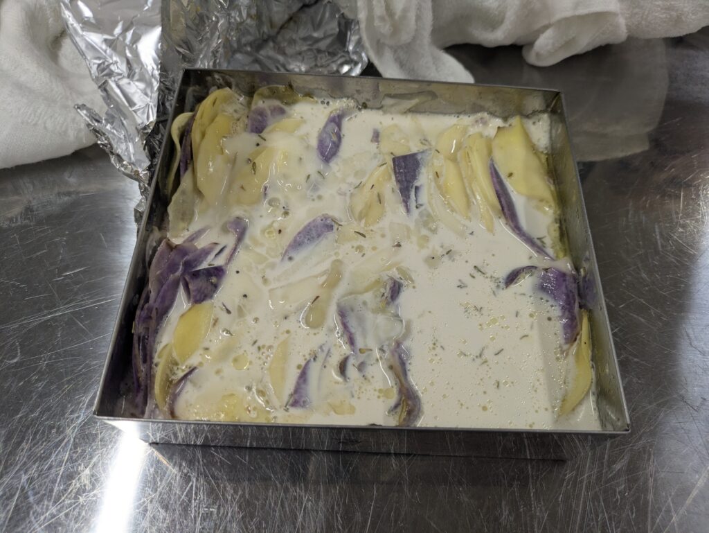 グラタンチームもう一組は、二種類のジャガイモを入れて彩りを工夫。