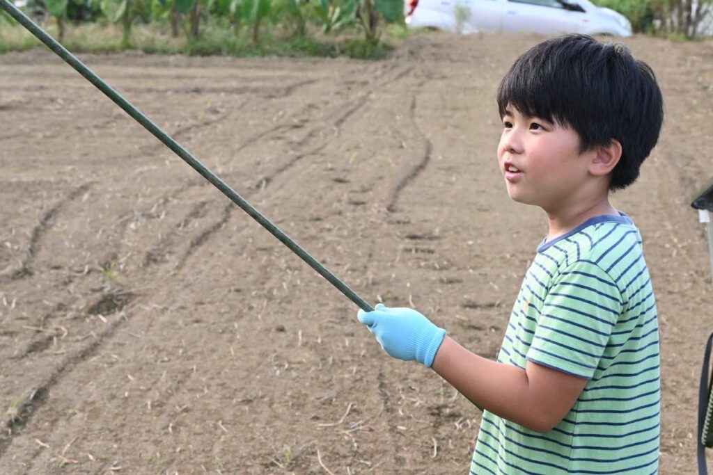 こちらの少年は「何か長い棒ない~?」と聞いてきたかと思えば、
