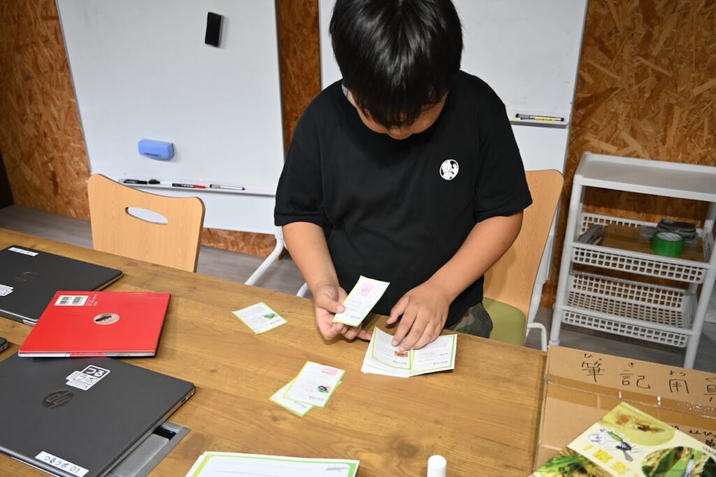 昆虫図鑑の仕上げを作るために必死に手を動かします。