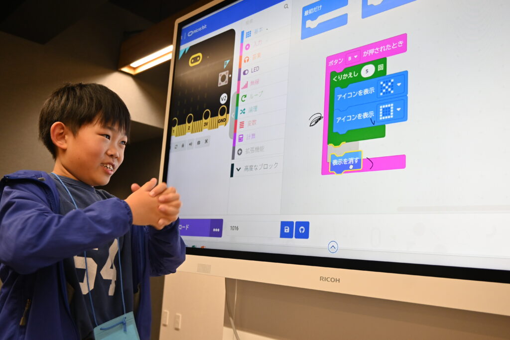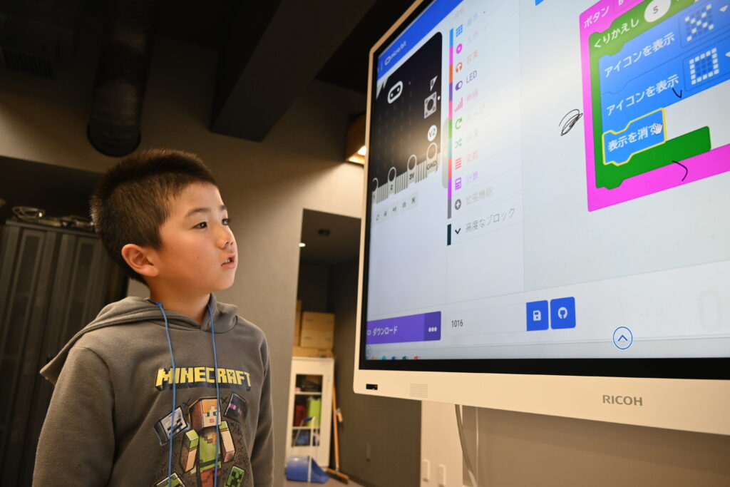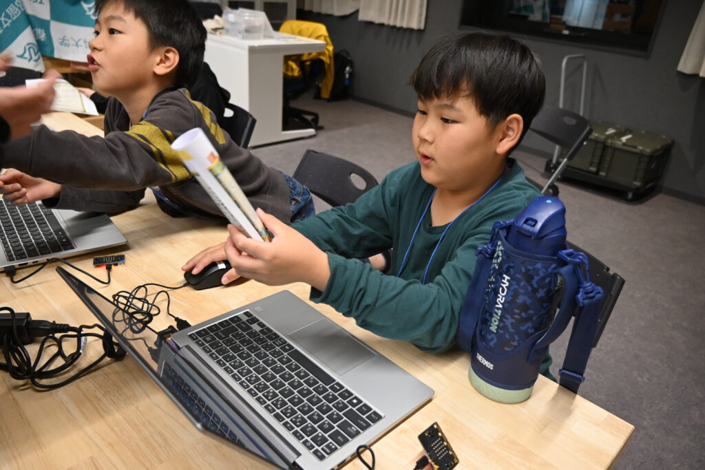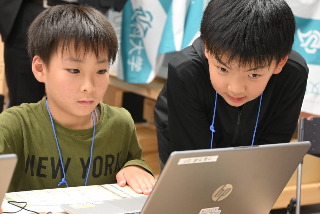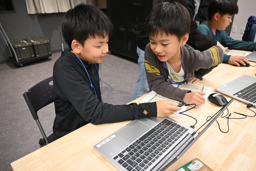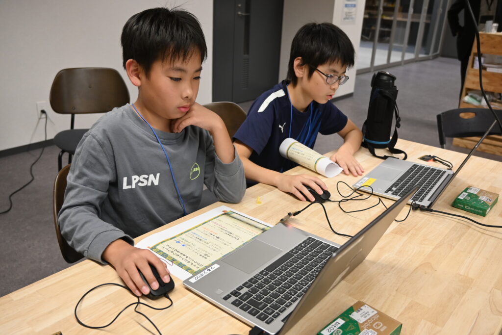プログラミングが得意な子が、プログラミングが初めての子に優しく声をかける姿も。