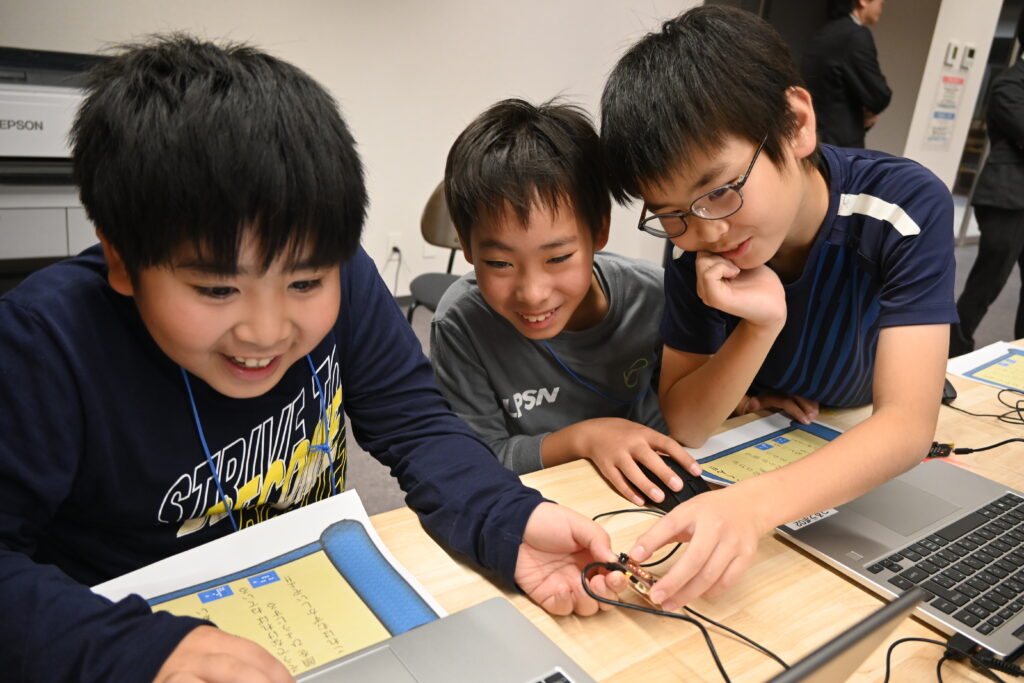 難しい課題にも試行錯誤しながら、お友達や大学生スタッフと教え合い、学び合う姿がとても印象的でした。