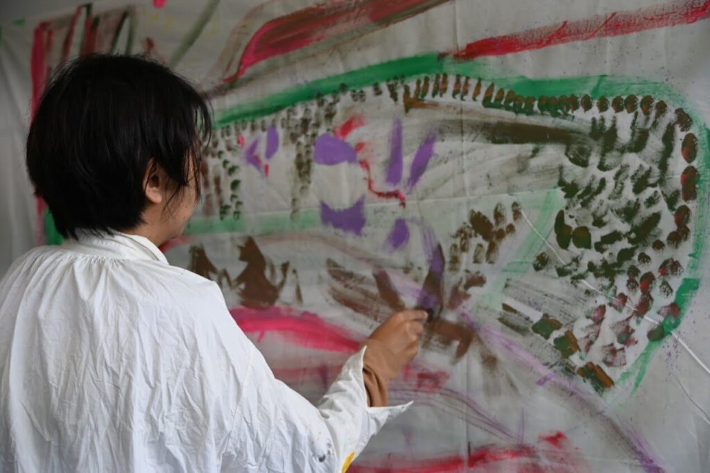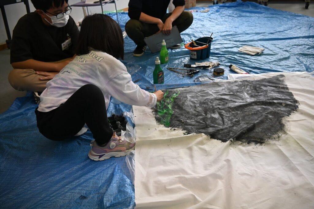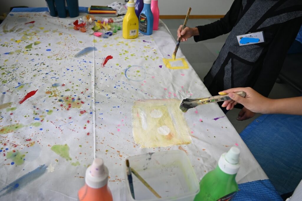 豆腐のかすチームは飛んだ豆腐のかすを色んな色で描いて実際飛ばしたりして