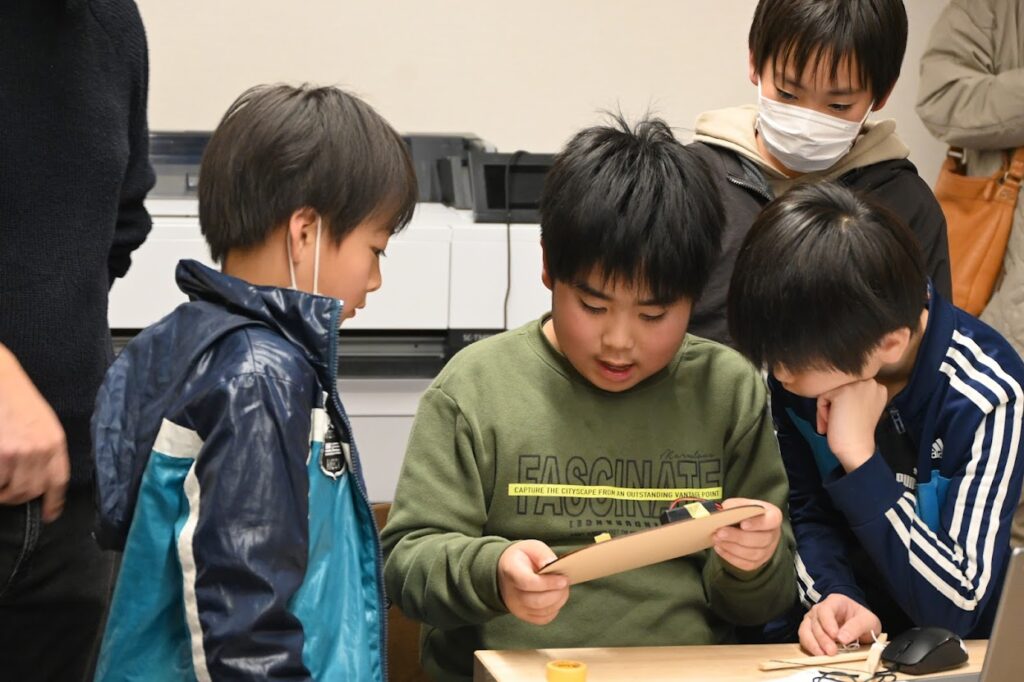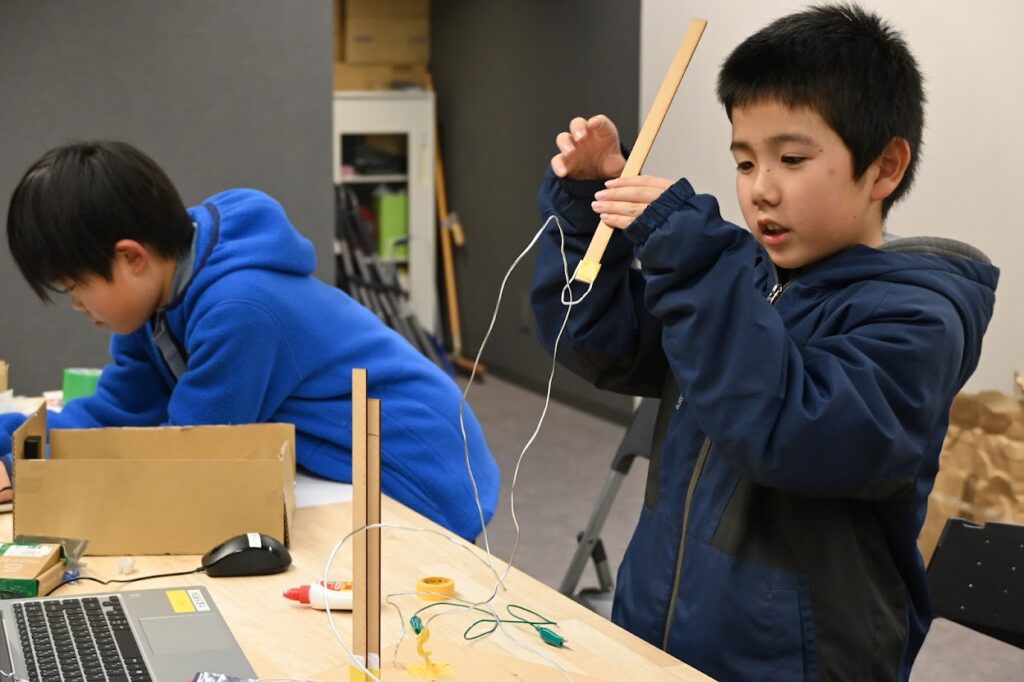 今回の「小型コンピューターでからくりそうちを作ろう」では、子どもたちがそれぞれの自由な発想で”からくりそうち”を作ることで、つるラボが大切にしている「自ら学び、自ら考える」姿がたくさん見られた時間になりました。