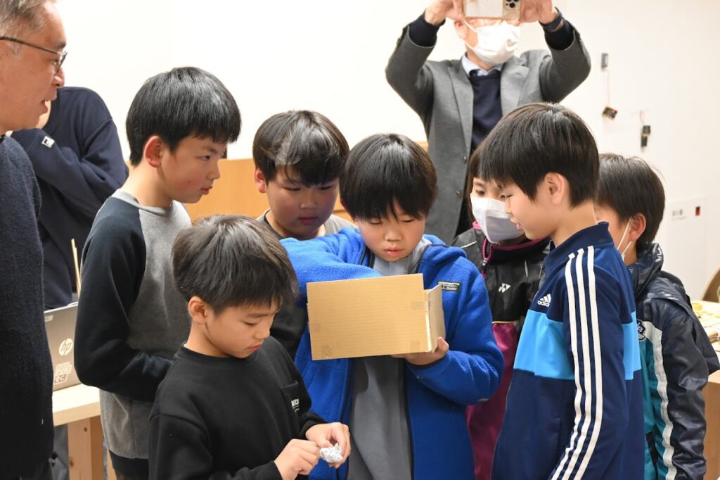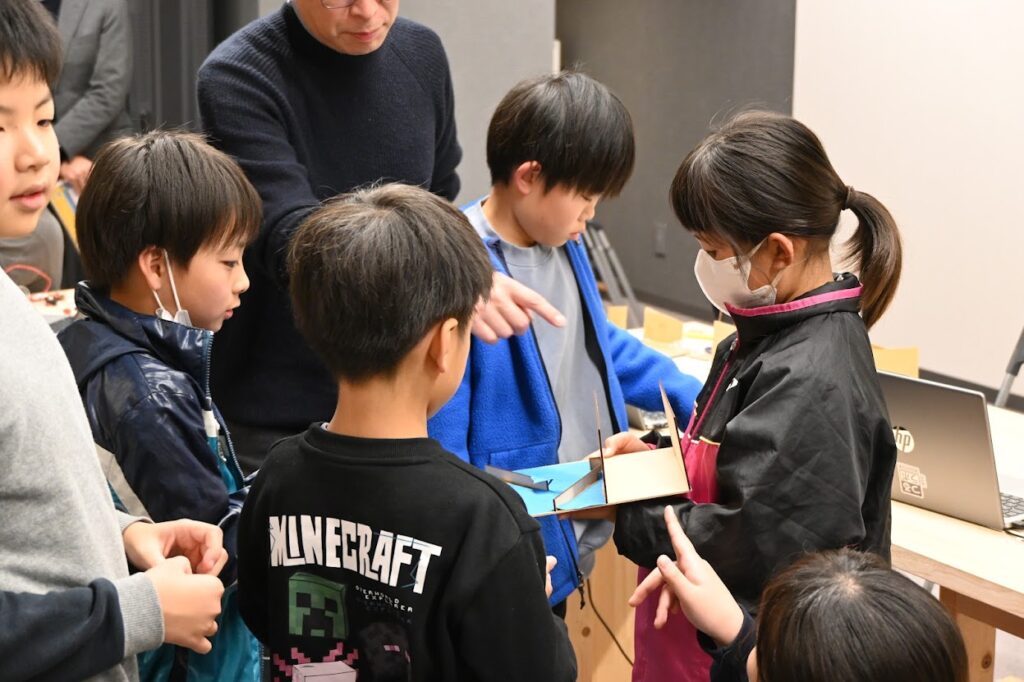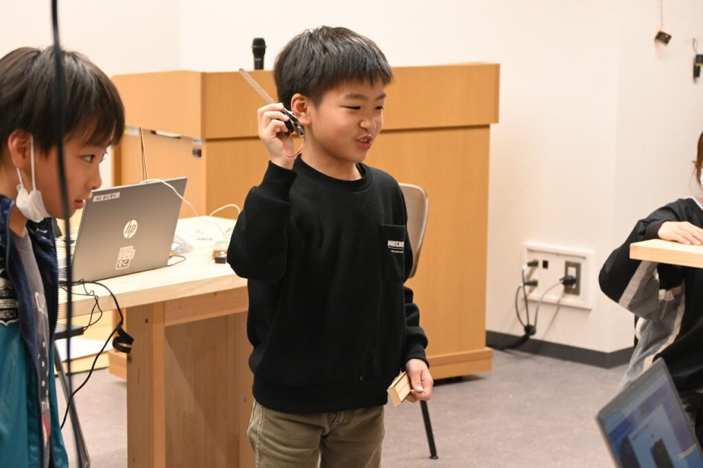 自分で一から作ったものを他の人に試してもらい、とてもうれしそうな表情をみせる子どもたち。