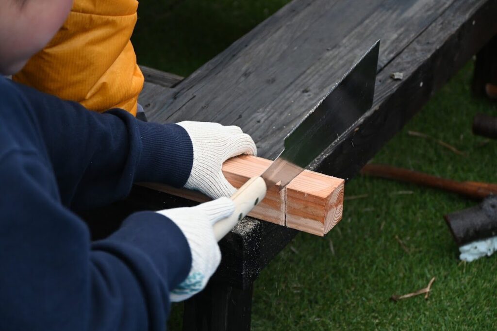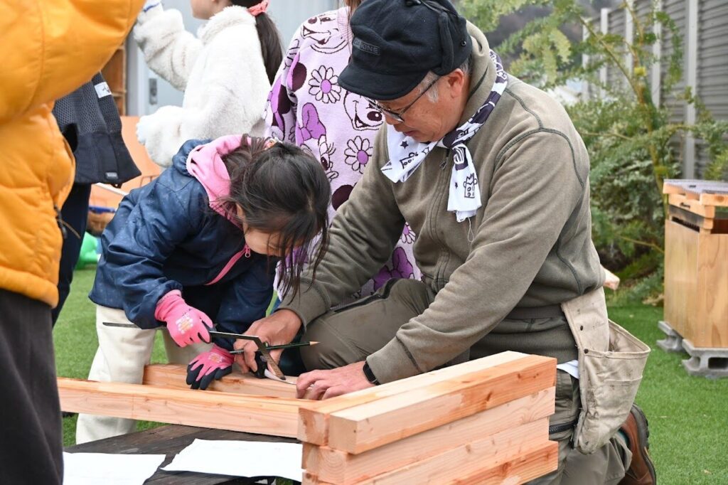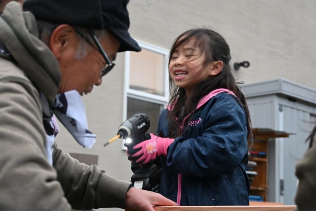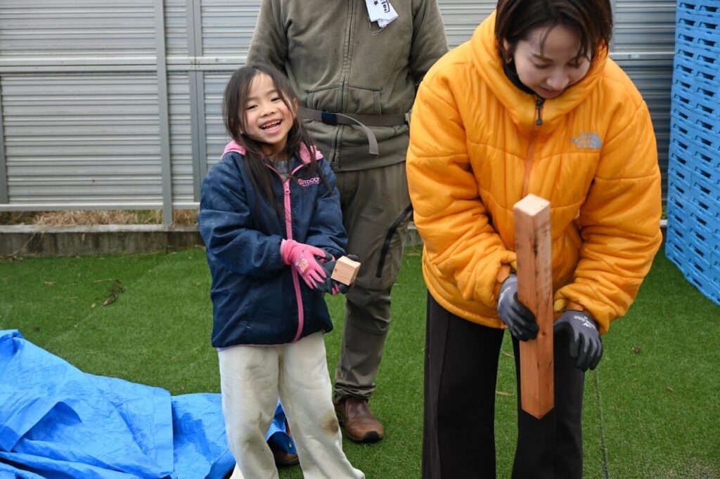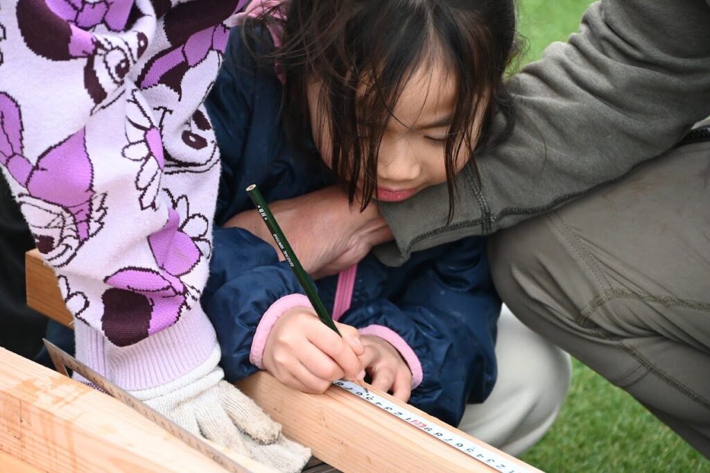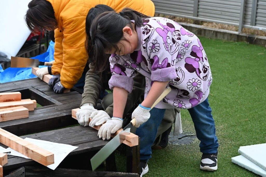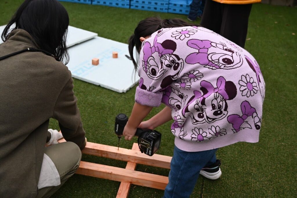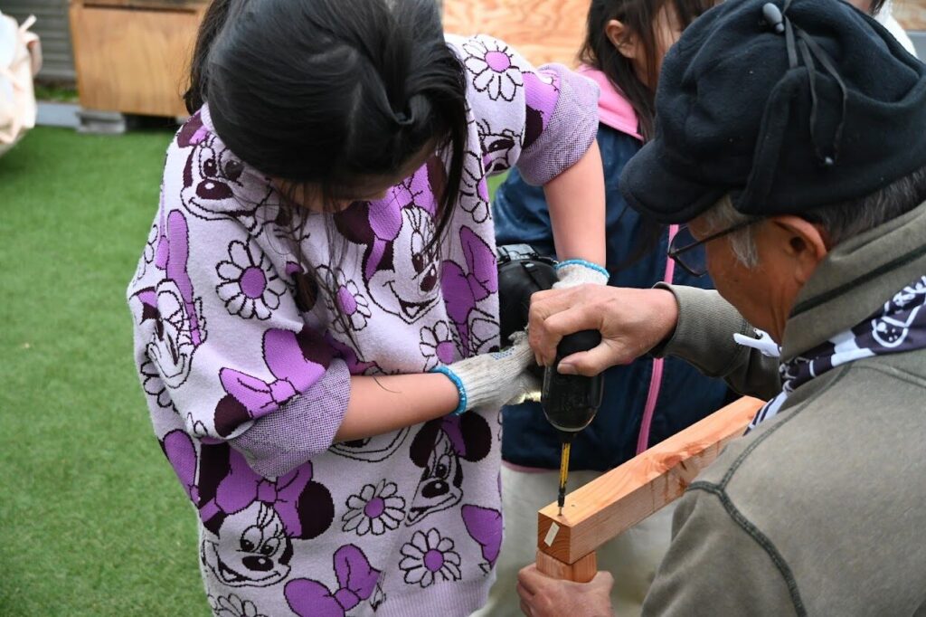 「穴開け隊~!」「はいはい~~!やる~。」と仲良くみんなでそれぞれ右と左の枠を完成させました。