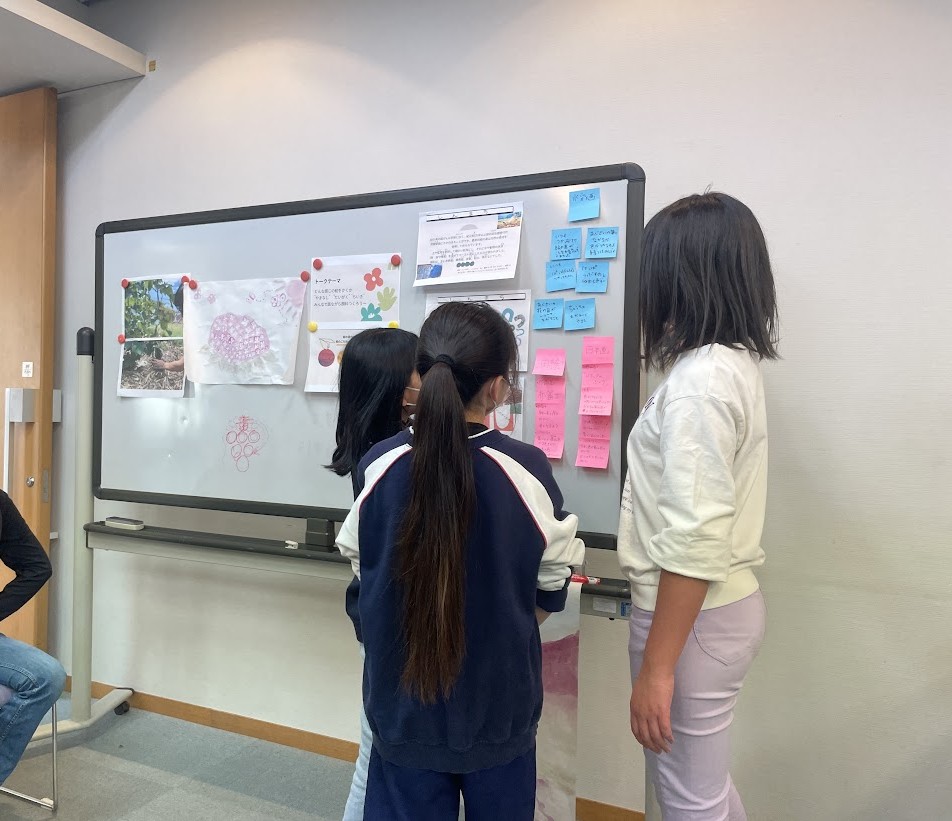 チーム日本画は、「日本画だから和でしょ?」「素材が日本画なだけだから、なんども描いていいよ。」と伝えると「やっぱ山梨だしブドウだね。」