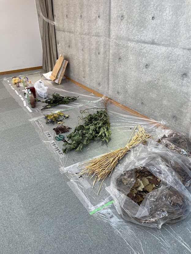 2種類のブドウと葉っぱや茎、枝も乾燥させたものや、液体は事前に絞って冷凍して保存したものや