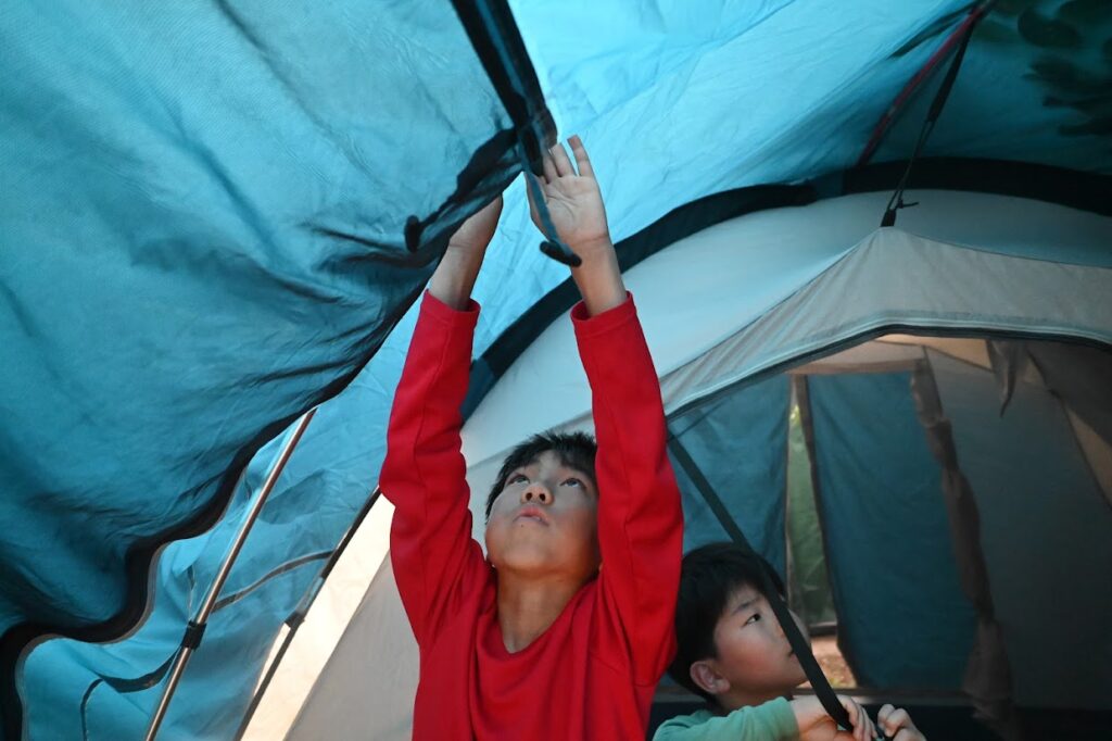 テントが雨と風がすごかった為畳んでいたので再度みんなで建てることに。