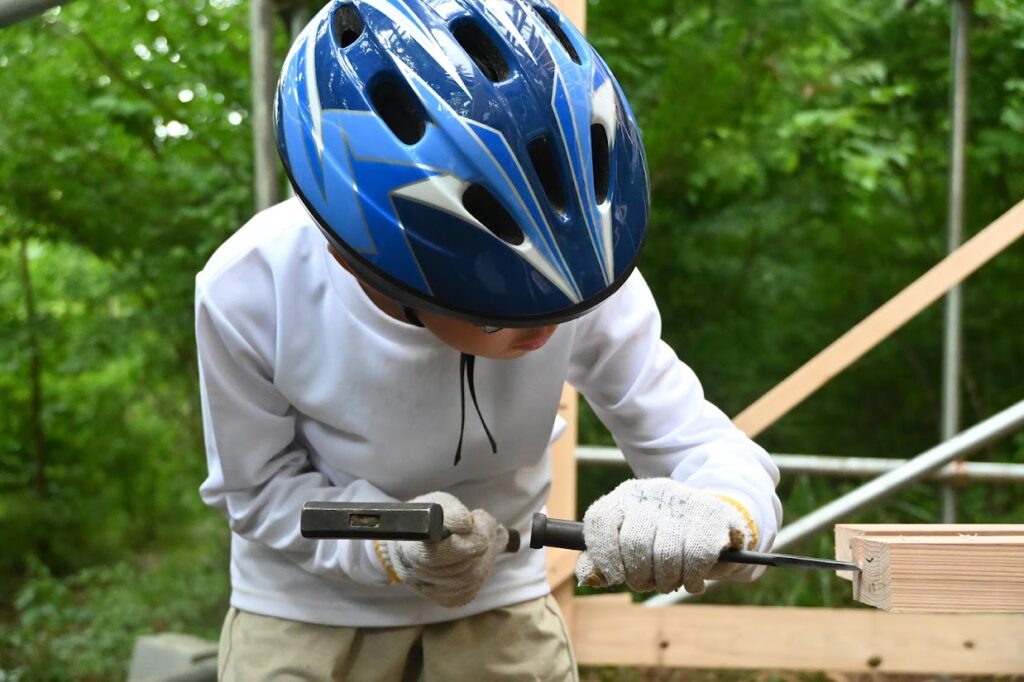 簡単そうに親方も棟梁も簡単に打ち込むけど子どもはなかなかうまくいきません。