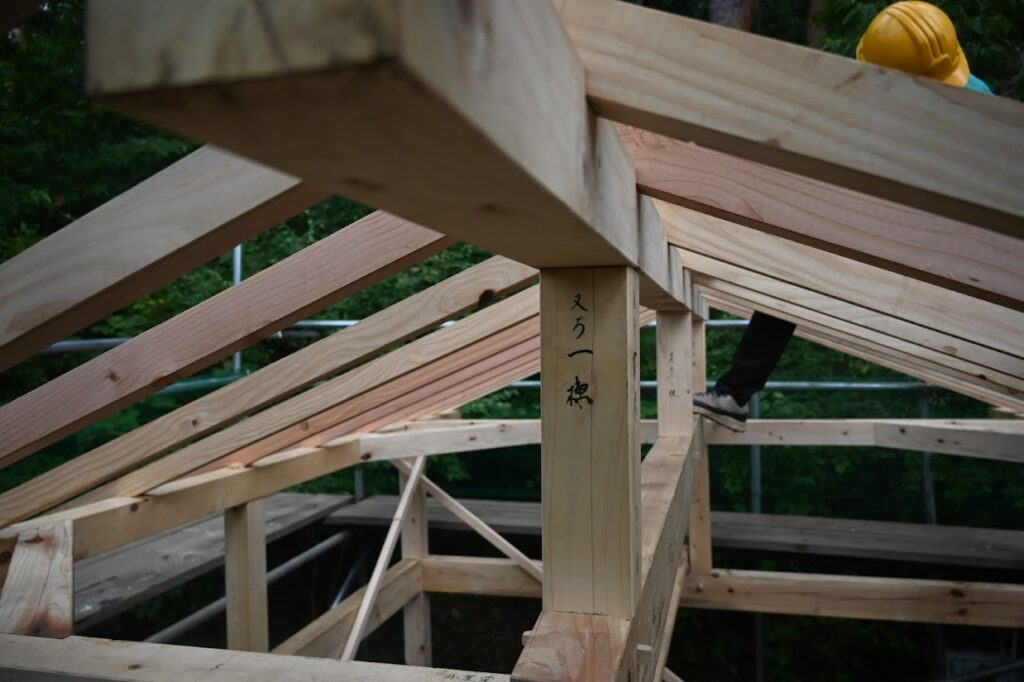 実は昨日上棟式が終わって本格的に屋根に上げるため足場を組みなおしていたのですが、