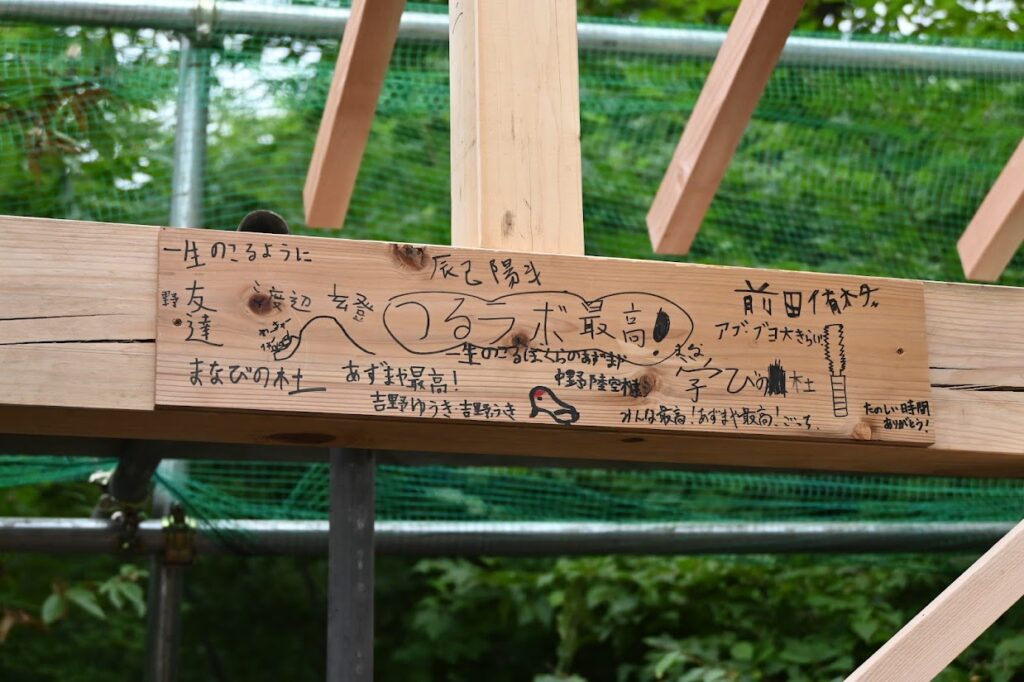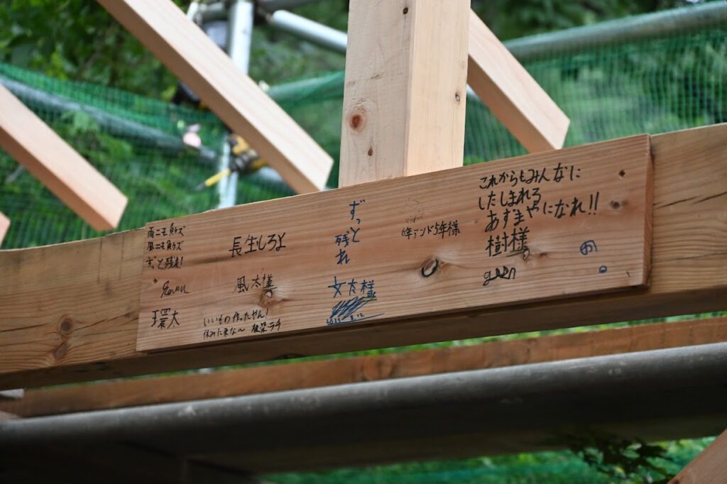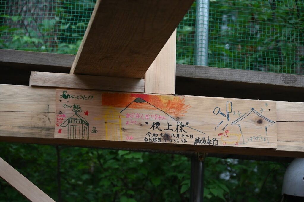 かっきー棟梁が昨日みんなでつくった想いの看板を取り付けてくれました。