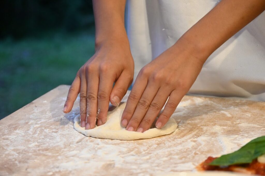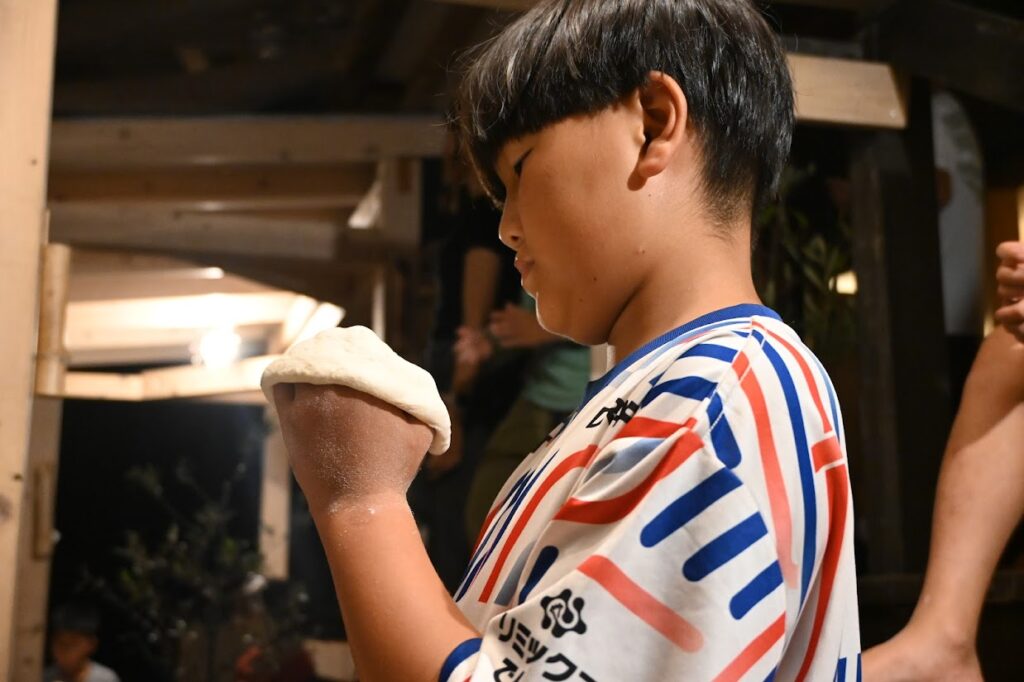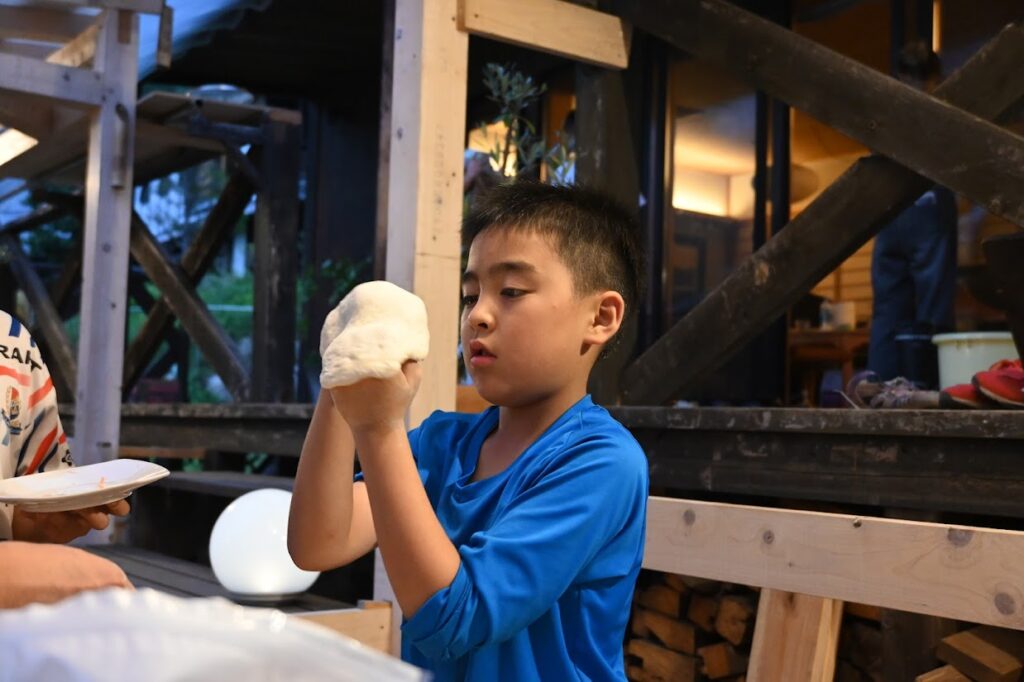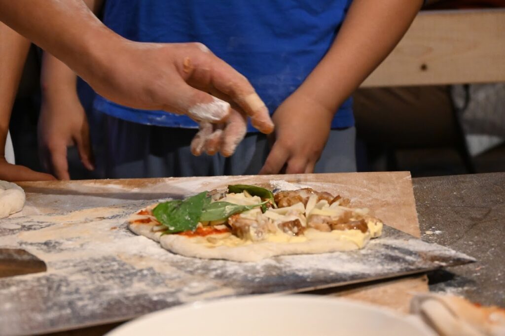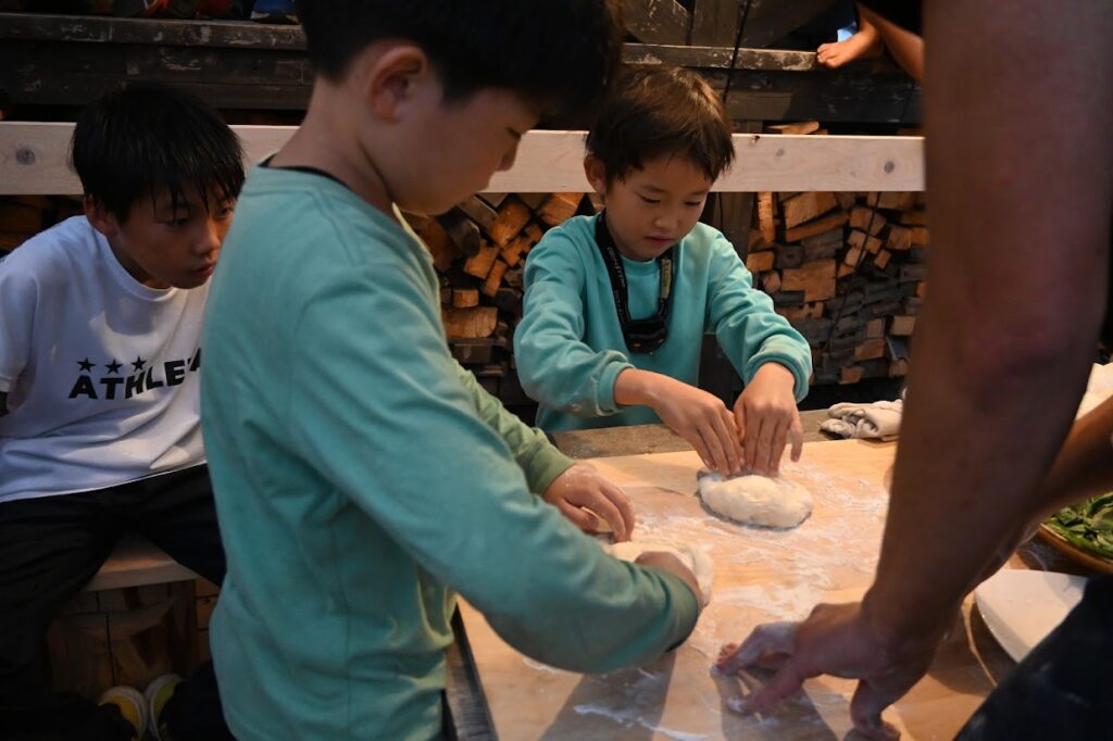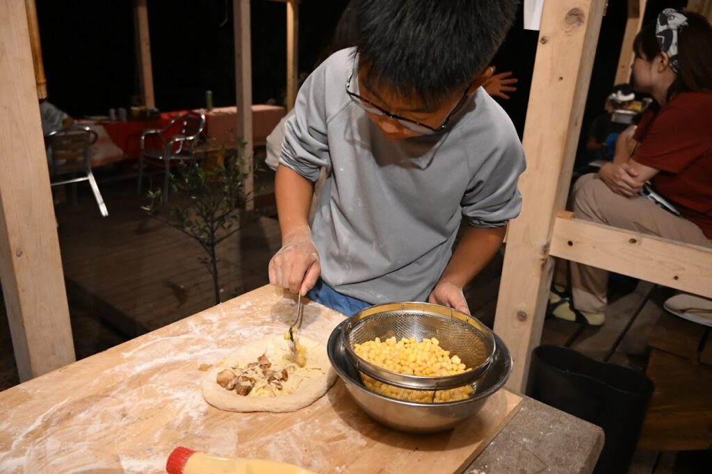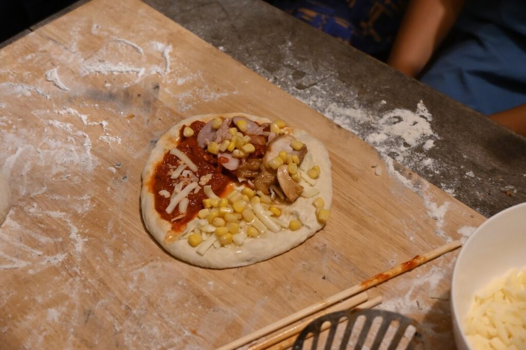 カリカリ生地とふわふわ生地に二種を用意してくれたのでみんなで生地を伸ばしてトッピングすることに。