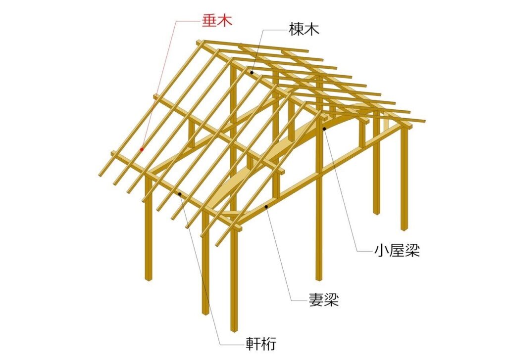 垂木は乗せているだけなので動いて落ちないように留めています。