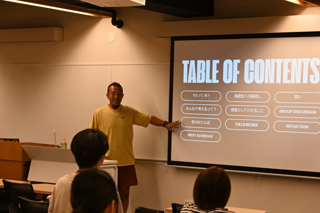 テーマは、「ゼミって何?みんなで考えるって?夜のおさんぽ〜偶発性へのまなざし〜 感覚としてわかること、わからないこと」。