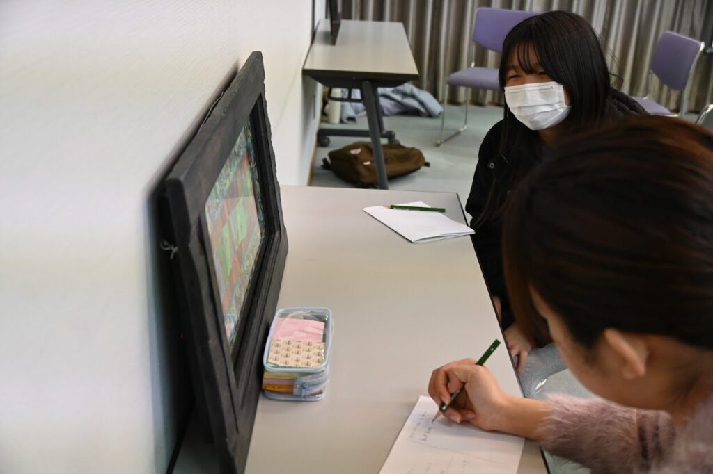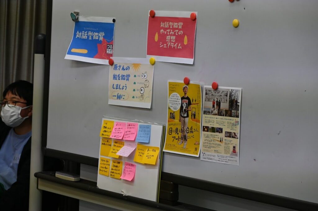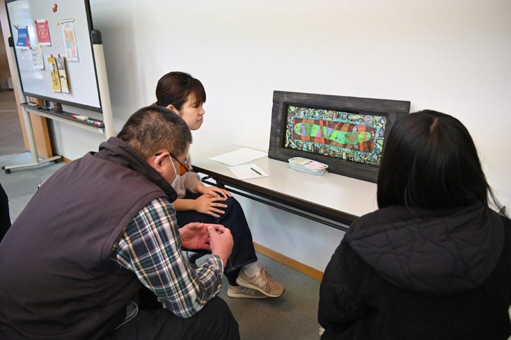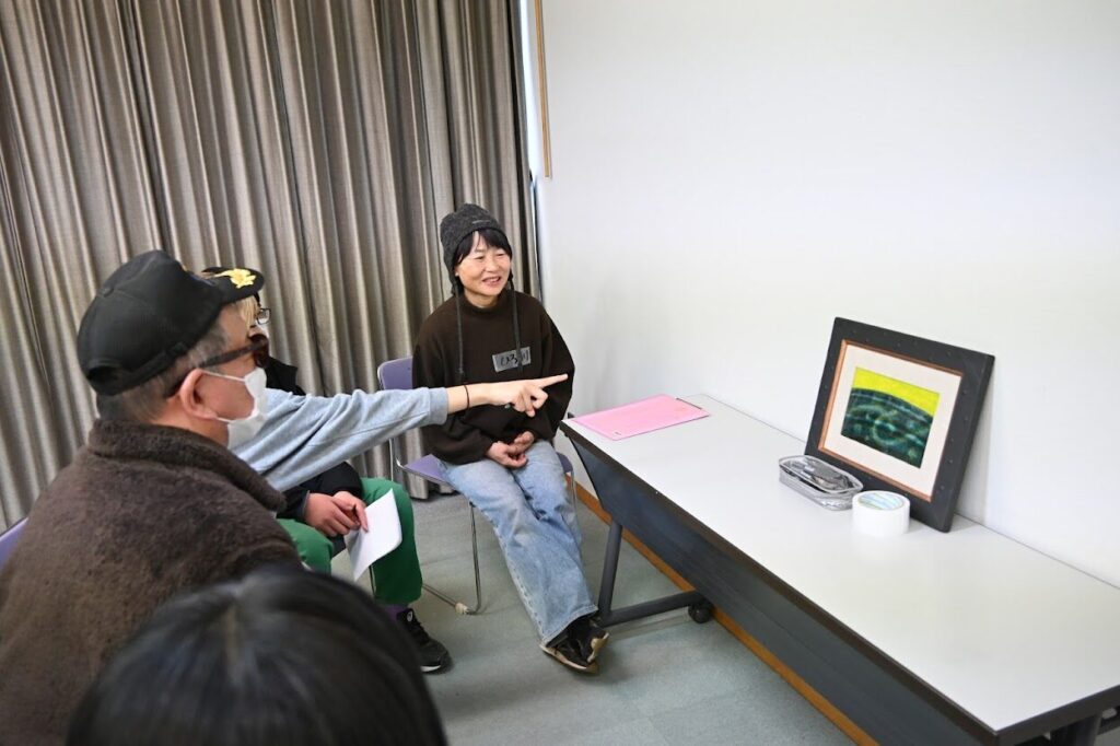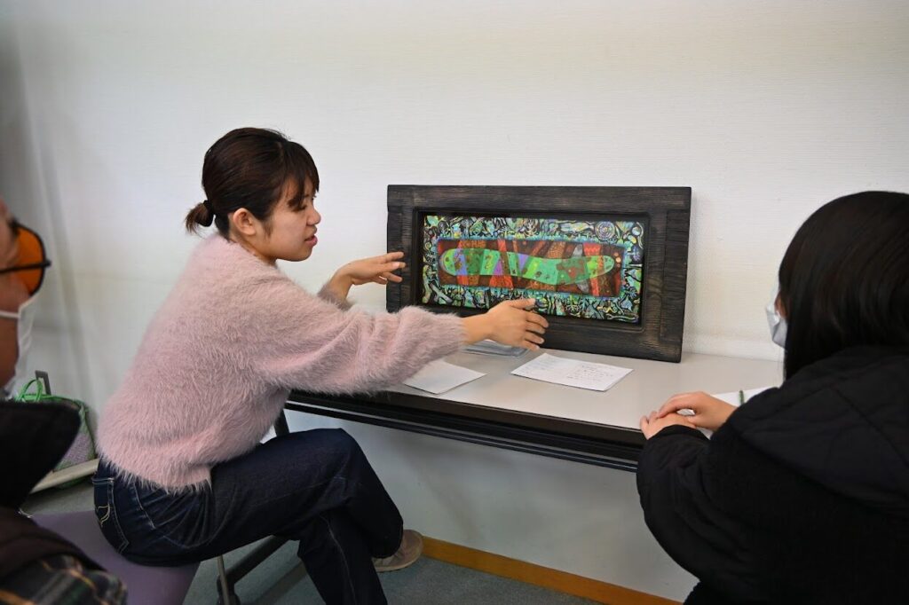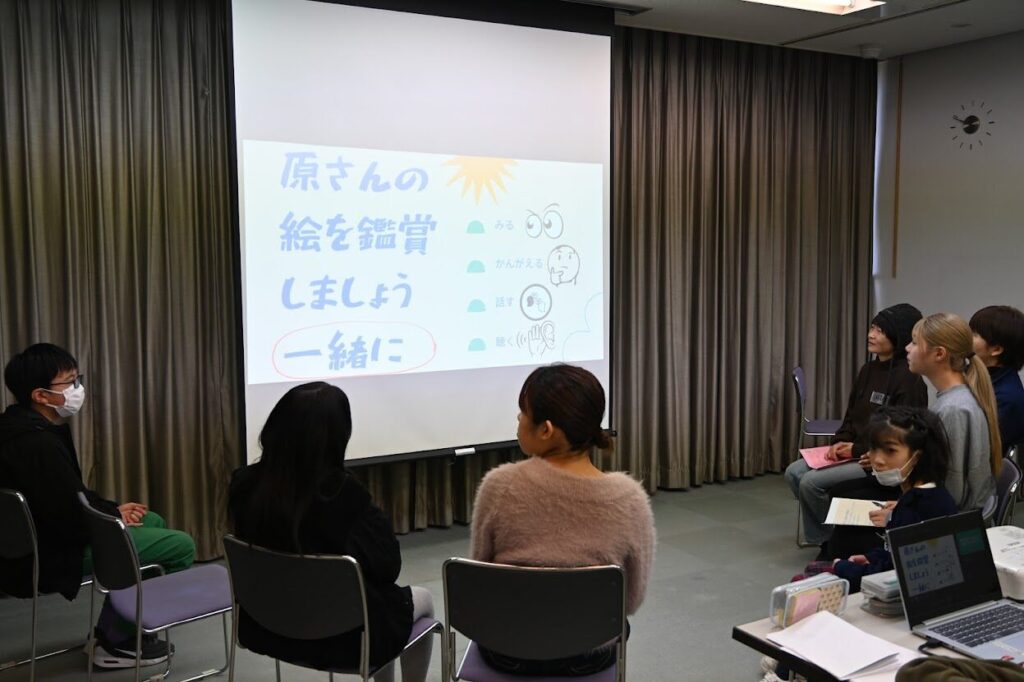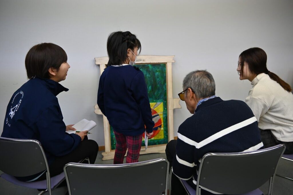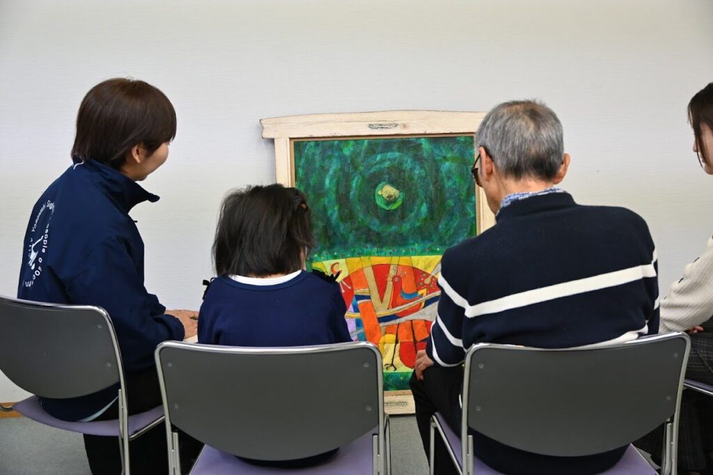 遠くや近くで見ることで見る絵が変わっていくこともみんなでこんなふうに見えてます、感じますなど対話中。
