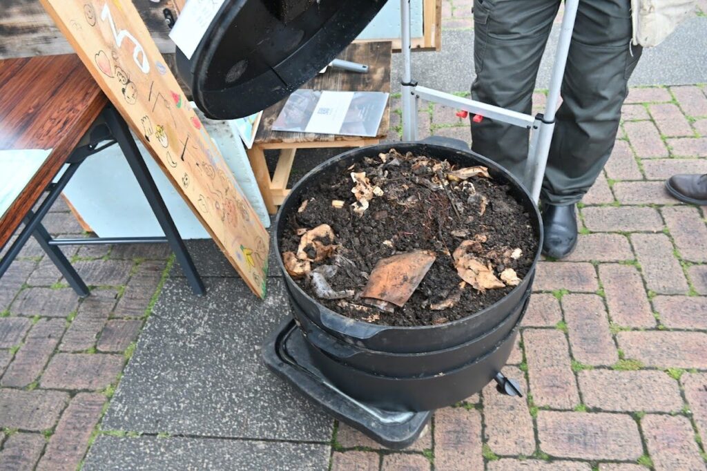 おもしろいコンポストのプランターをみせてもらいました。