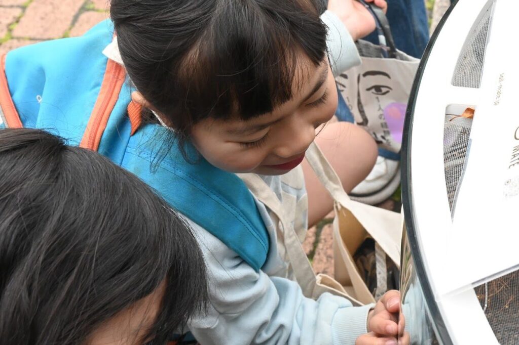 作って以来久しぶりにみんなで観察。この間最後入れたものはすっかりなくなっています。